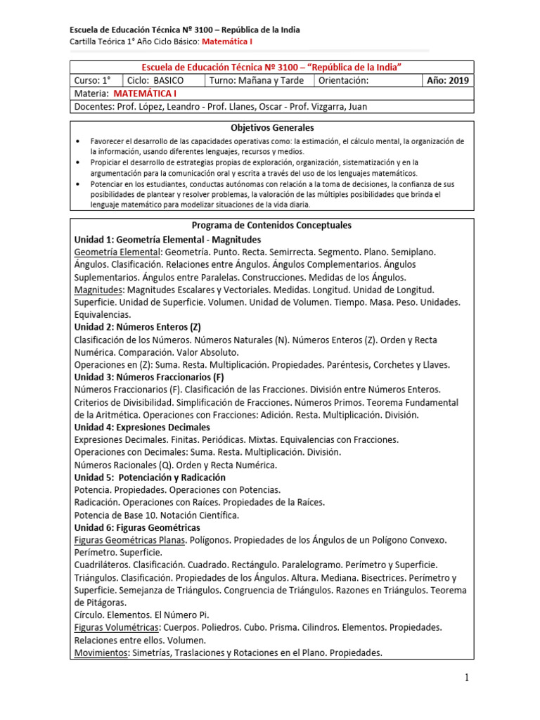 Cartilla Teórica 1° Año Ciclo Básico: Matemática I