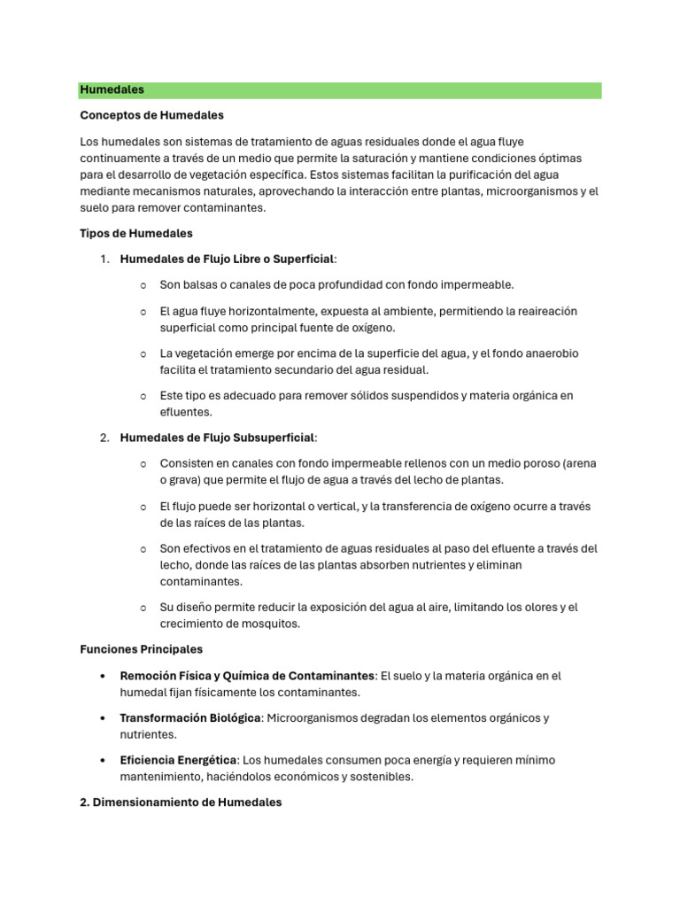 El dimensionamiento de humedales es esencial para garantizar que el sistema funcione de manera