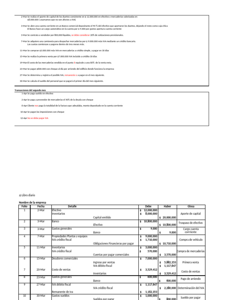 2-Mar Se realiza el aporte de capital de los dueños consistente en $ 12.000.