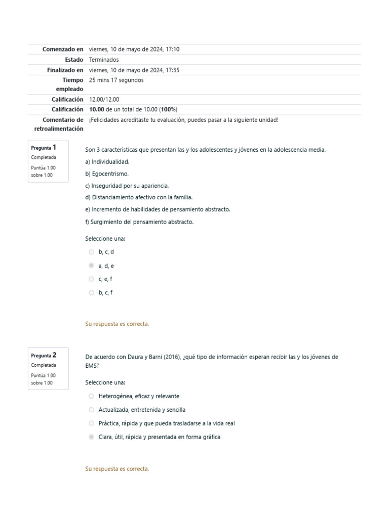 Pregunta 1 Son 3 características que presentan las y los adolescentes y jóvenes en la adolescencia media.