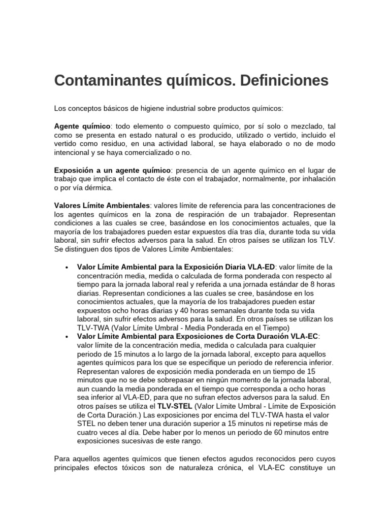 valorarse en relación con ambos límites. En cambio, a los agentes químicos de