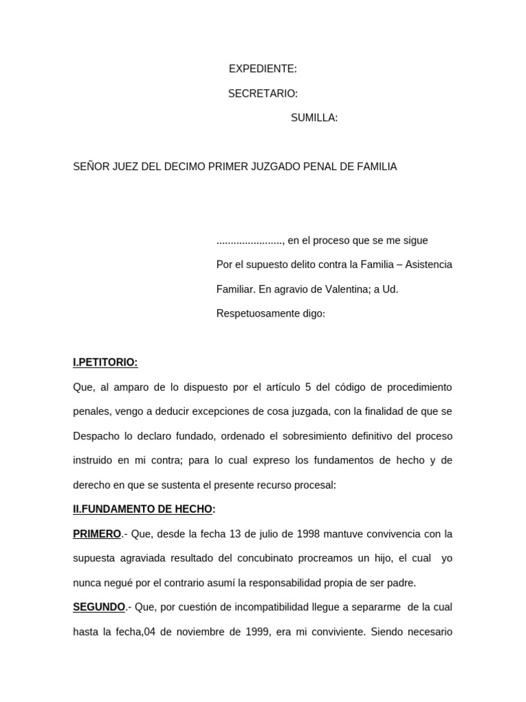 penales, vengo a deducir excepciones de cosa juzgada, con la finalidad de que se