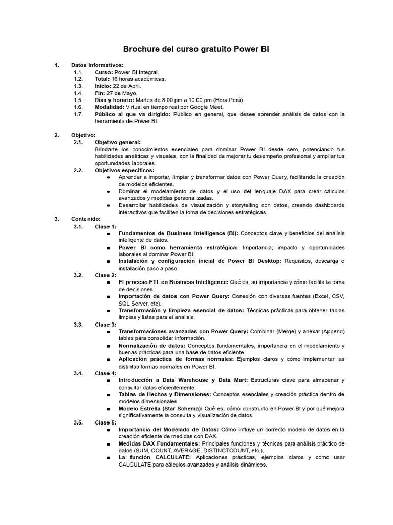 1.5. Días y horario: Martes de 8:00 pm a 10:00 pm (Hora Perú)