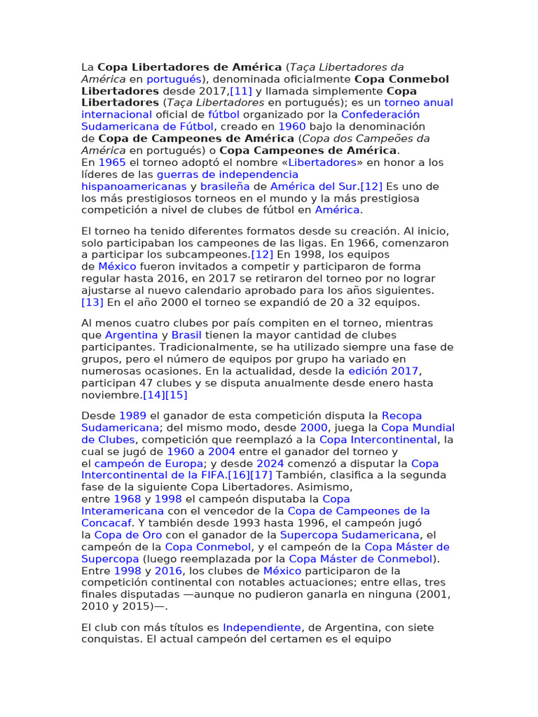 Artículo principal: Anexo:Historia de la Copa Libertadores