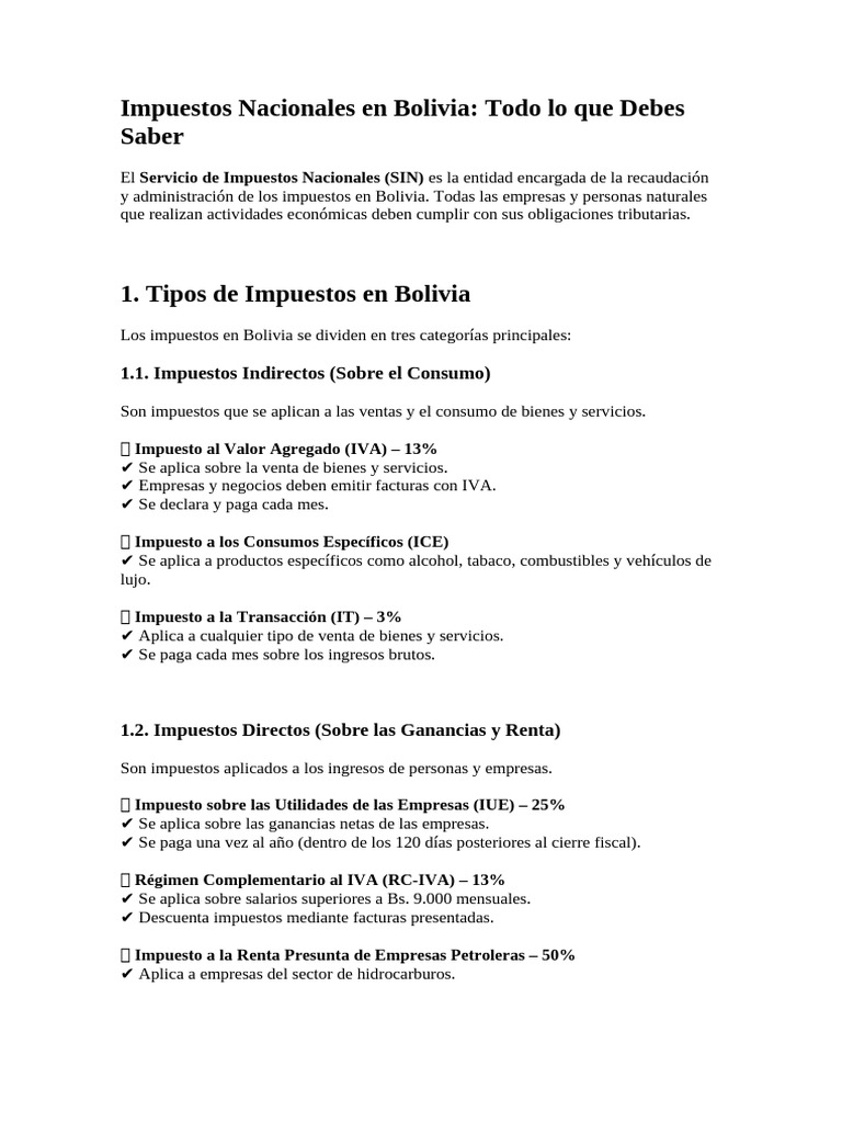 Impuestos Nacionales en Bolivia: Todo lo que Debes