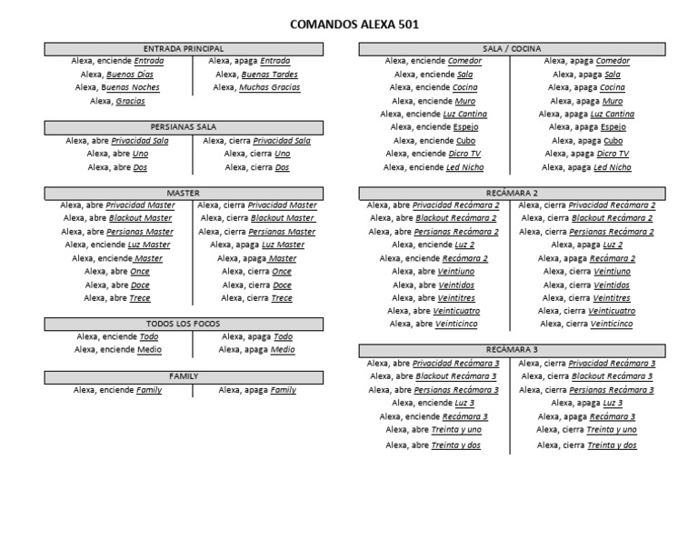 COMANDOS ALEXA 501