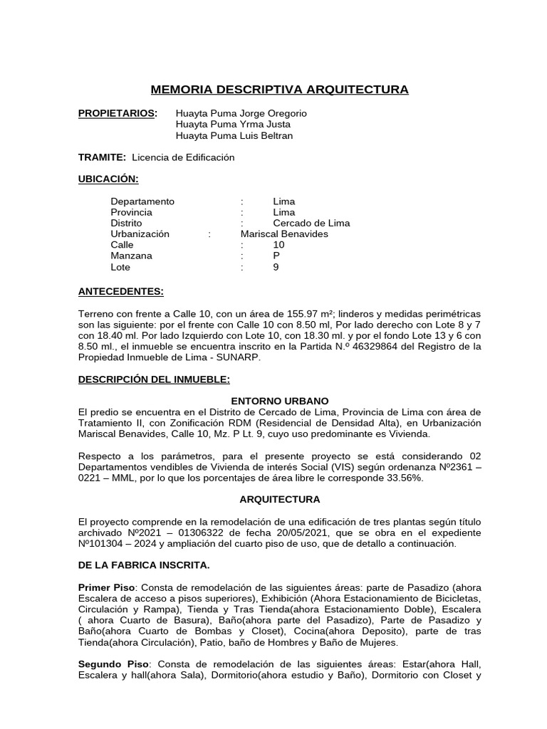 MEMORIA DESCRIPTIVA ARQUITECTURA