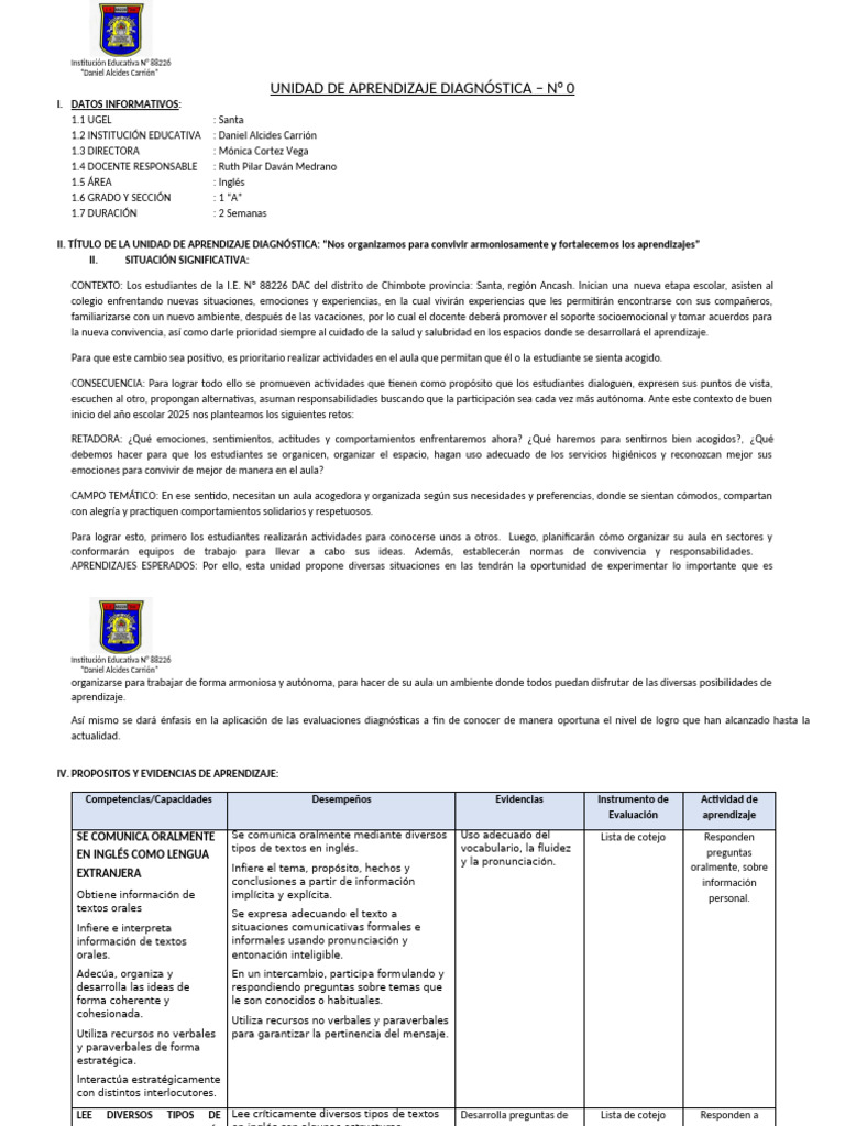 UNIDAD DE APRENDIZAJE DIAGNÓSTICA – N° 0