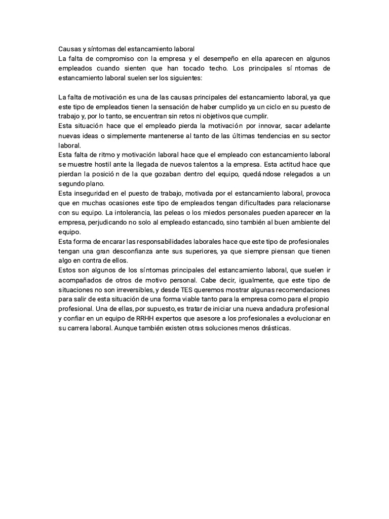 estancamiento laboral suelen ser los siguientes: