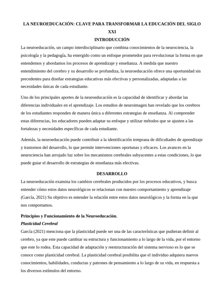 educación del siglo XXI. Al integrar los hallazgos de la neurociencia, la psicología y la pedagogía, la