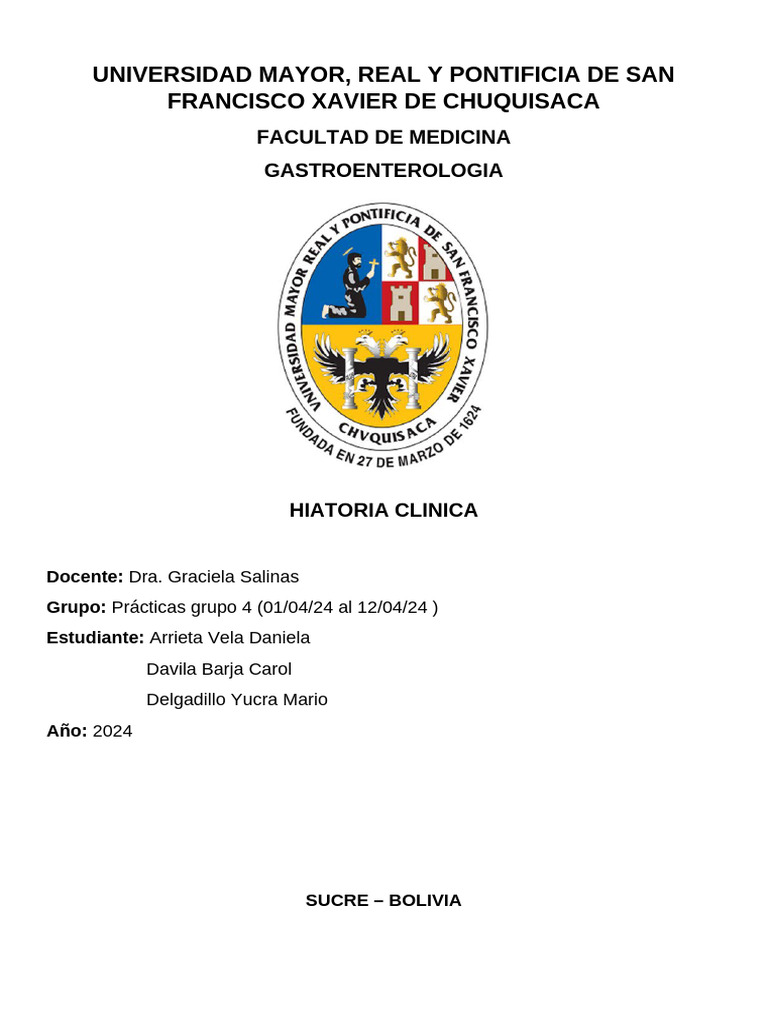aguda y es referido al centro de especialidad gastroenterológico Boliviano japones en la ciudad de sucre, llegando a