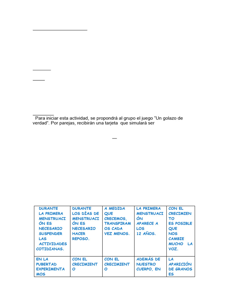 trabajar lo referido a los cambios en la pubertad, los cambios corporales, etc.