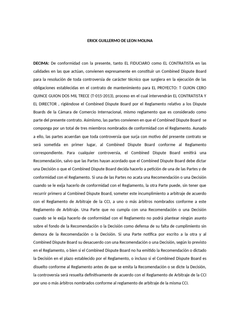 parte del presente contrato. Asimismo, las partes convienen en que el Combined Dispute Board se
