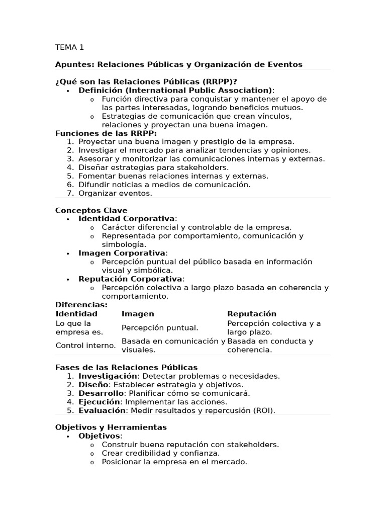 Apuntes: Relaciones Públicas y Organización de Eventos