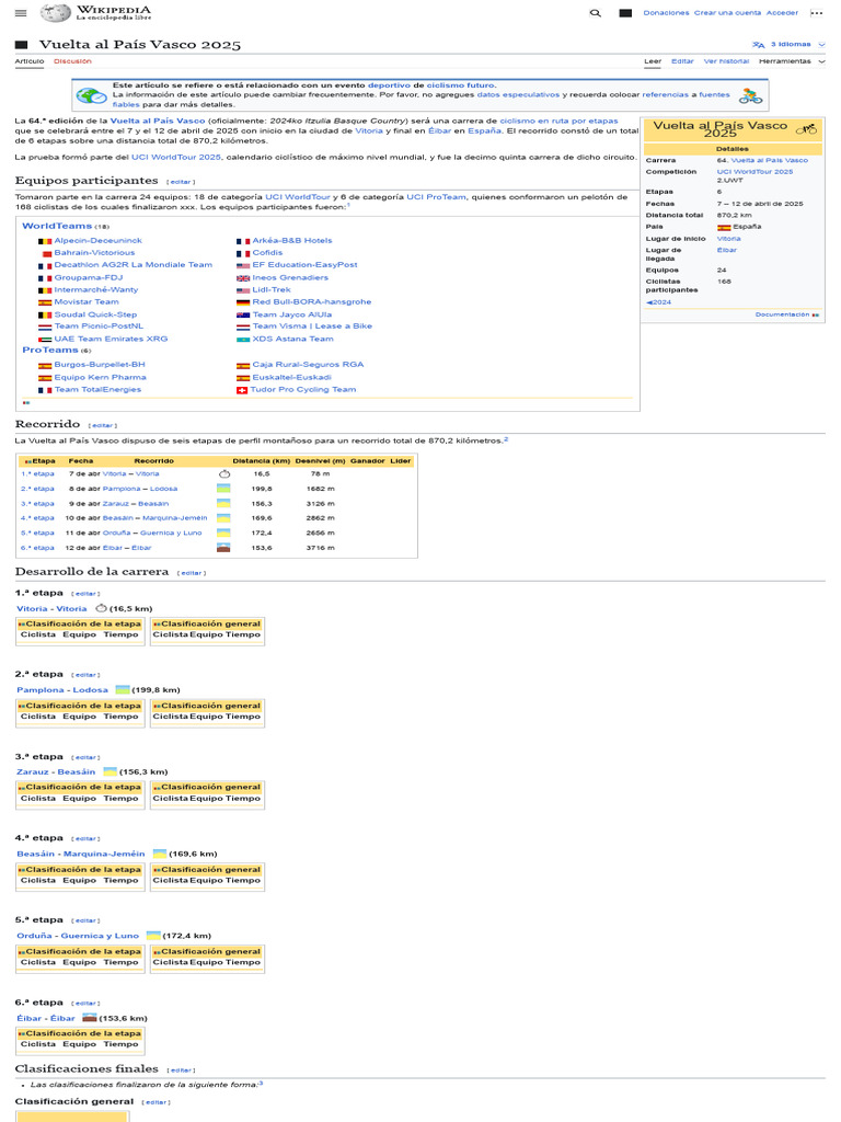 3. ↑ «Clasificaciones finales de la Vuelta al País Vasco 2025» . [Link]