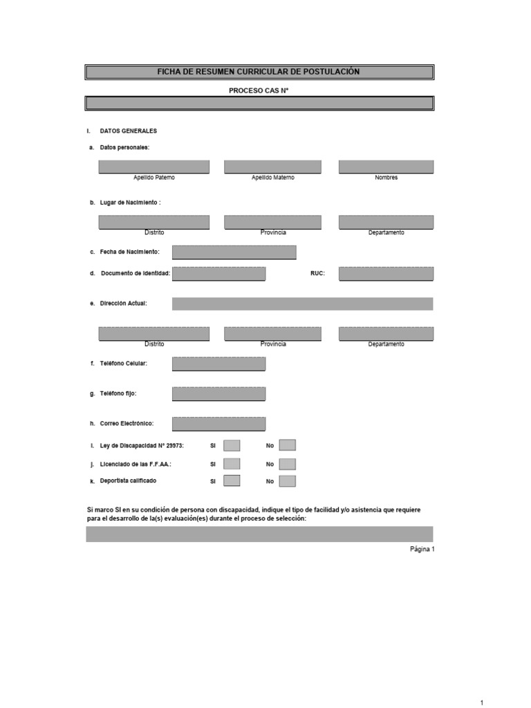 FICHA DE RESUMEN CURRICULAR DE POSTULACIÓN