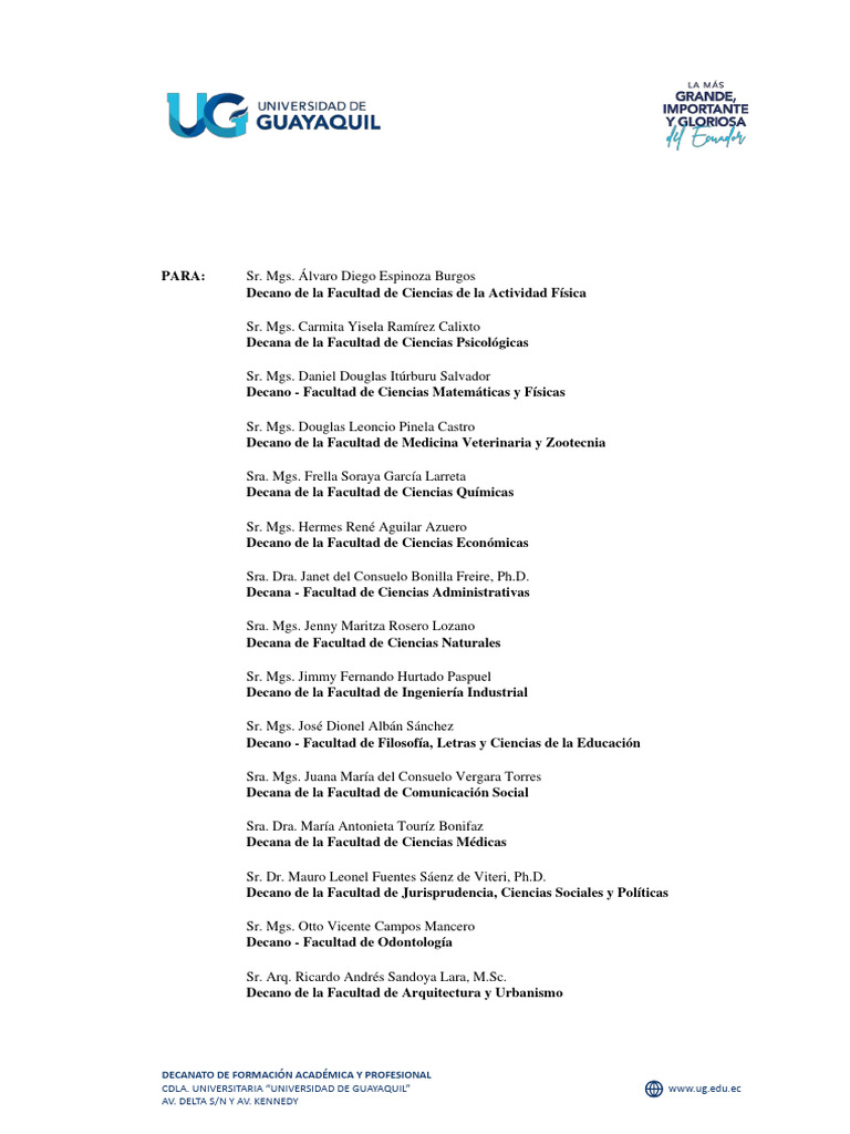 En cumplimiento de las atribuciones establecidas en el Estatuto de la Universidad de Guayaquil y el