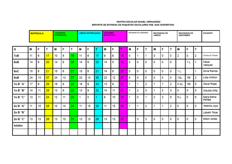 REPORTE DE ENTREGA DE PAQUETES ESCOLARES FEB. 2025 VESPERTINO
