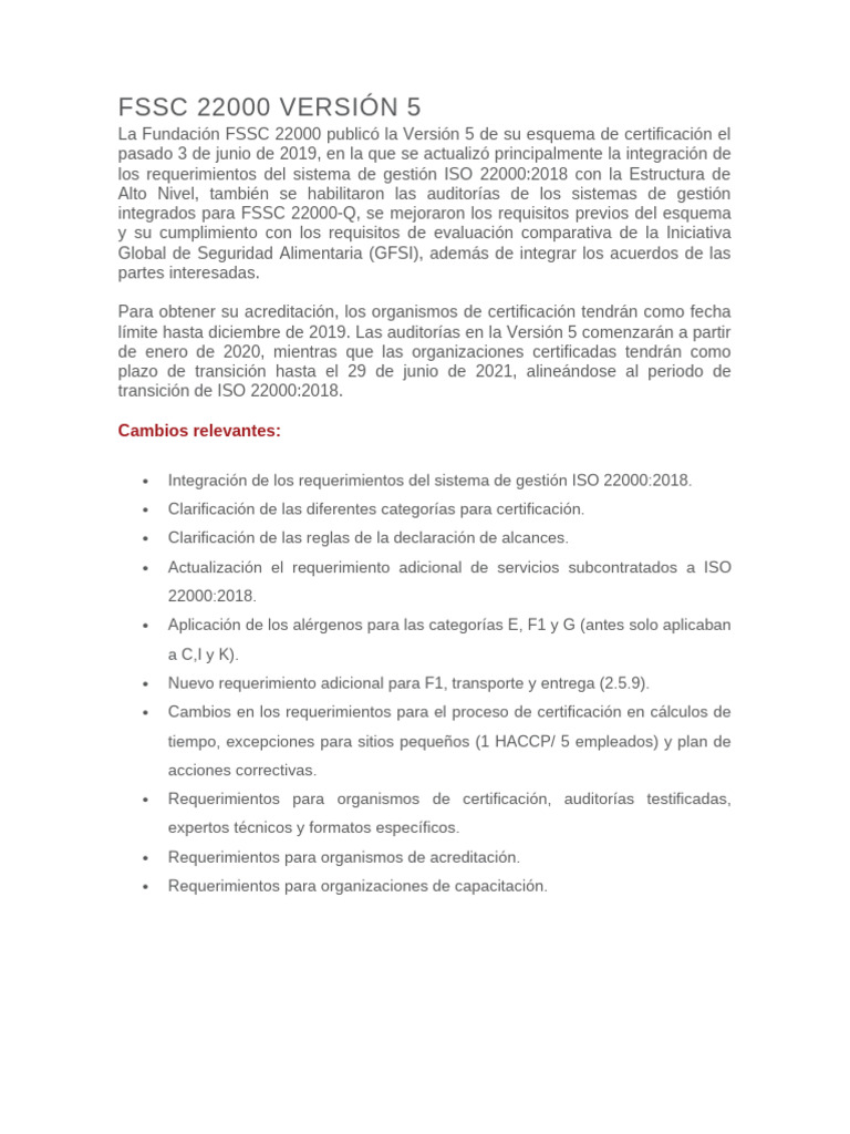 La estructura de los documentos cambió, ahora el esquema FSSC 22000 reúne