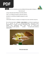 grados bajo cero, convirtiéndose la mezcla ya en helado. Cuando sale de la heladera el helado está semi-congelado, (muy cremoso,