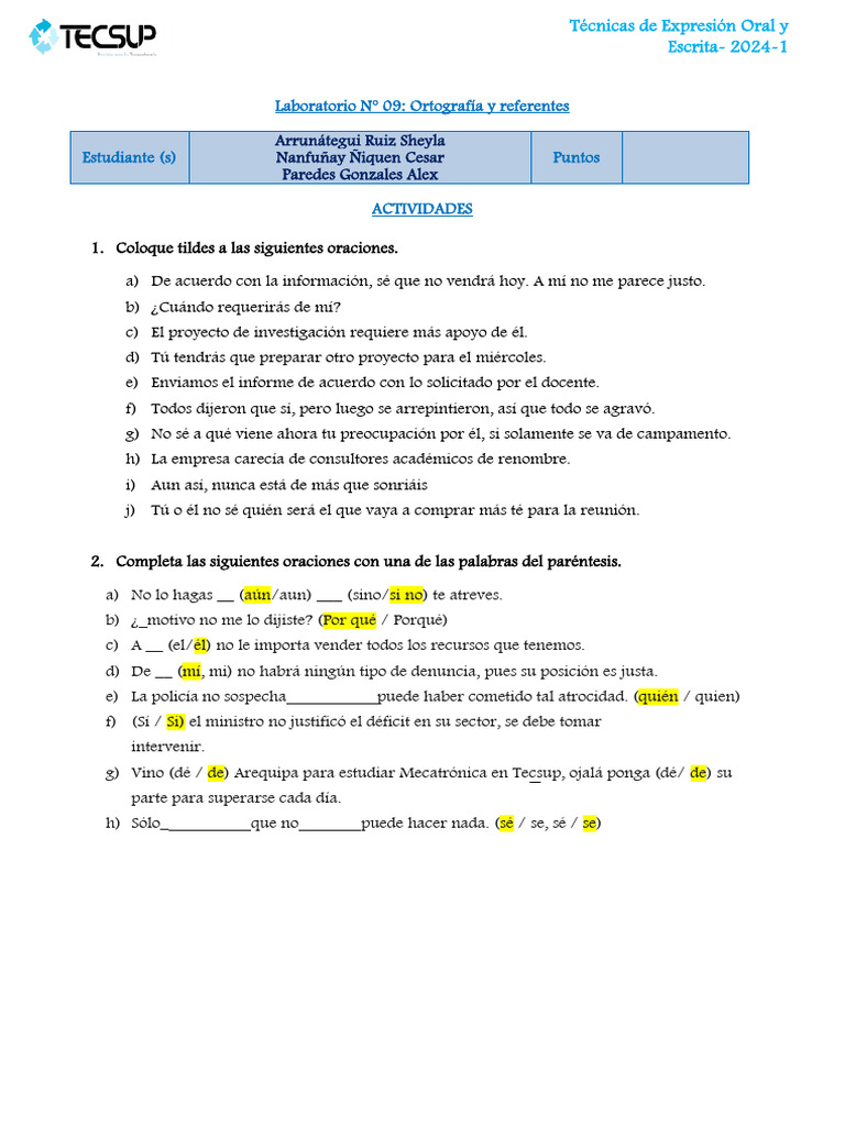 Laboratorio N° 09: Ortografía y referentes
