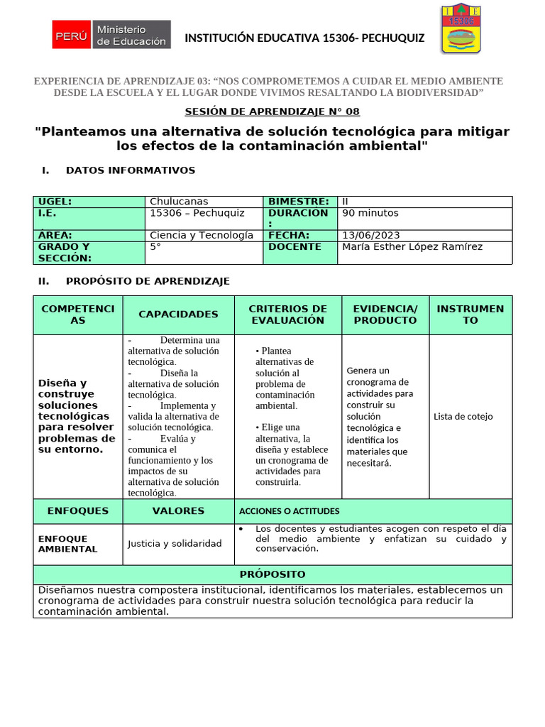 INSTITUCIÓN EDUCATIVA 15306- PECHUQUIZ