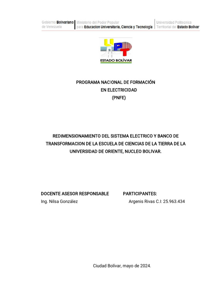 REDIMENSIONAMIENTO DEL SISTEMA ELECTRICO Y BANCO DE