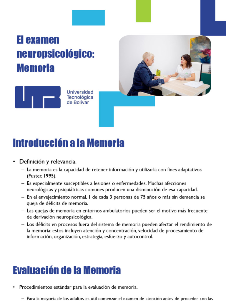 – Una evaluación integral de la memoria debe incluir: