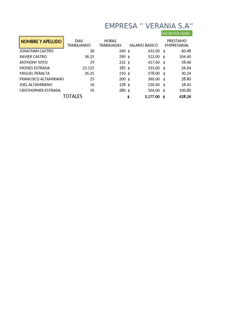 TRABAJANDO TRABAJADAS SALARIO BASICO EMPRESARIAL