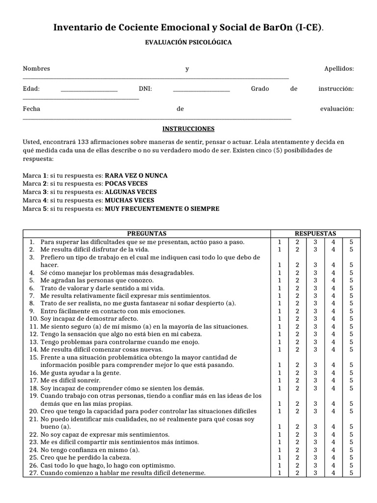 Inventario de Cociente Emocional y Social de BarOn (I-CE).