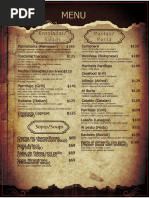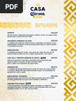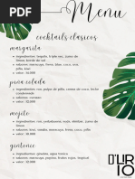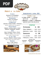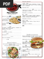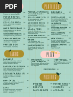 El documento presenta un menú de un establecimiento llamado FL Paisa, que incluye una variedad de alimentos y bebidas como taquería, pizzería y cafetería. Se detallan precios y descripciones de platillos, bebidas frías y calientes, así como postres y opciones de alcohol. Además, se incluyen diferentes tipos de tacos, tortas, hamburguesas y platillos especiales, junto con sus respectivas guarniciones.