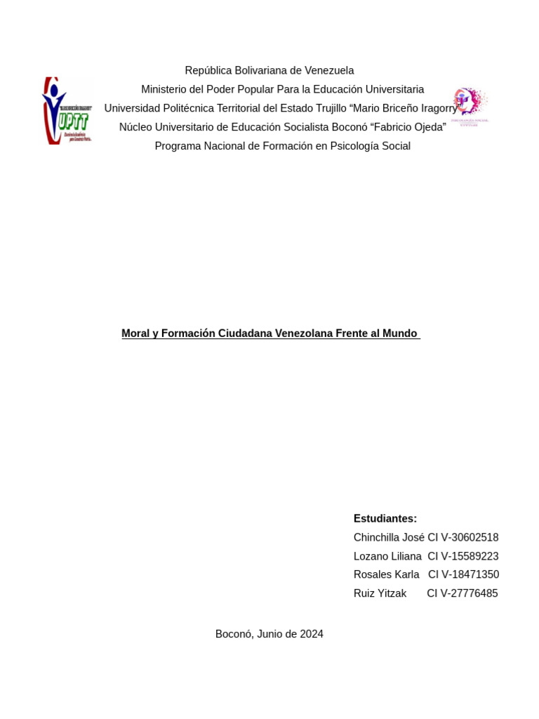 Moral y Formación Ciudadana Venezolana Frente al Mundo