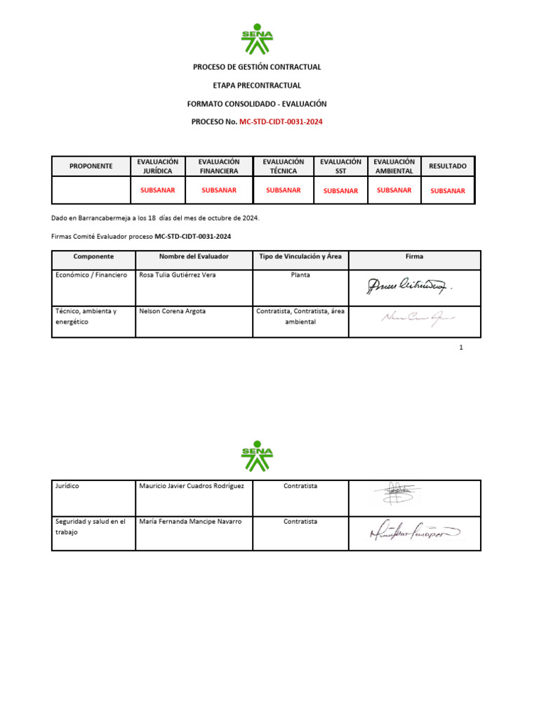 Con toda atención nos dirigimos a Ud. Edgar Alfonso Navas Rojas, en su calidad de delegataria del gasto, con el propósito de presentar la evaluación de carácter jurídico en el