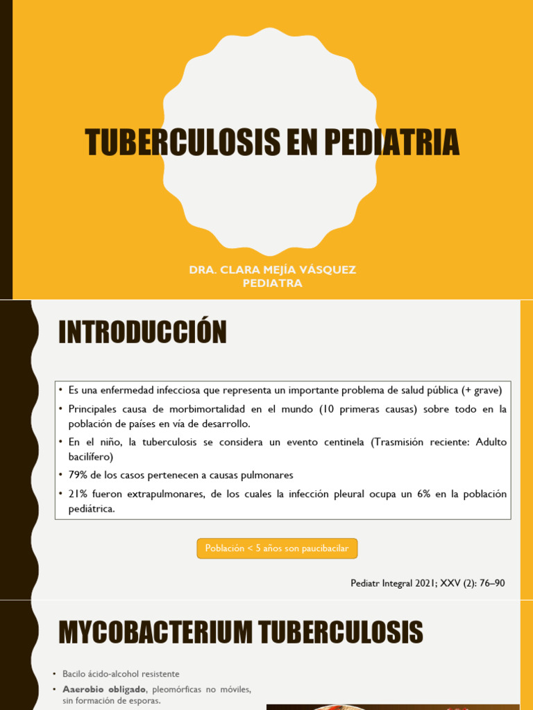 • La tuberculosis en niños supone entre 10-20% del total de casos en el mundo.