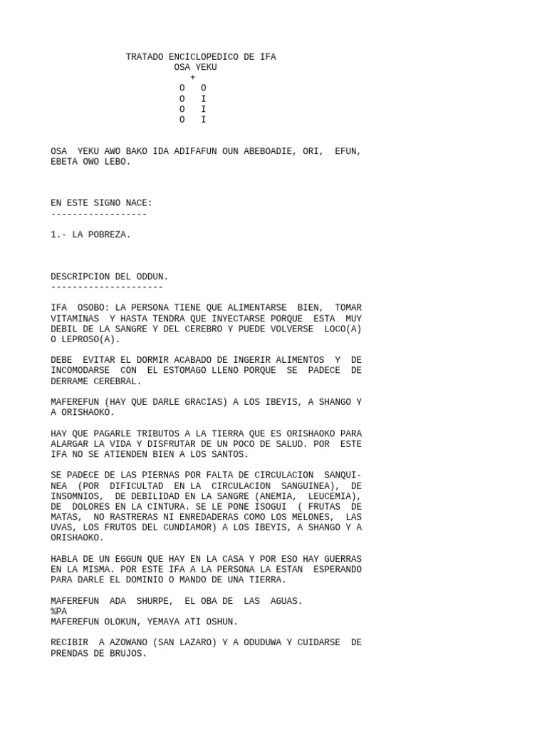 HABIAN BOTADO. ENTONCES ORUNMILA LE DIJO; ESE QUE USTEDES