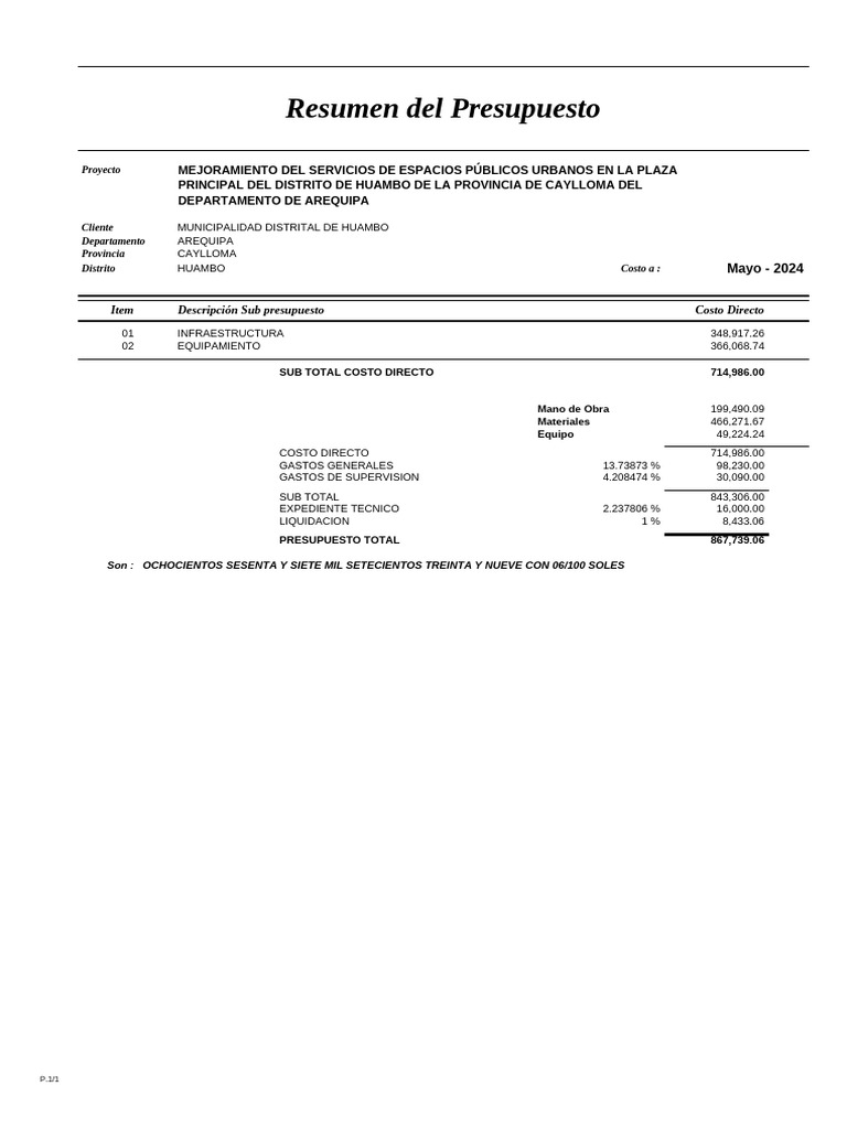 SUB TOTAL COSTO DIRECTO 714,986.00