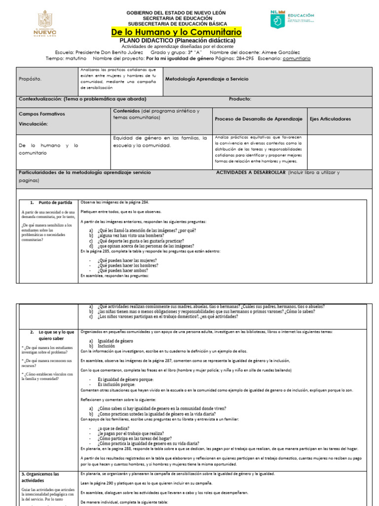 Tiempo: matutino Nombre del proyecto: Por la mi igualdad de género Páginas: 284-295 Escenario: comuntiario