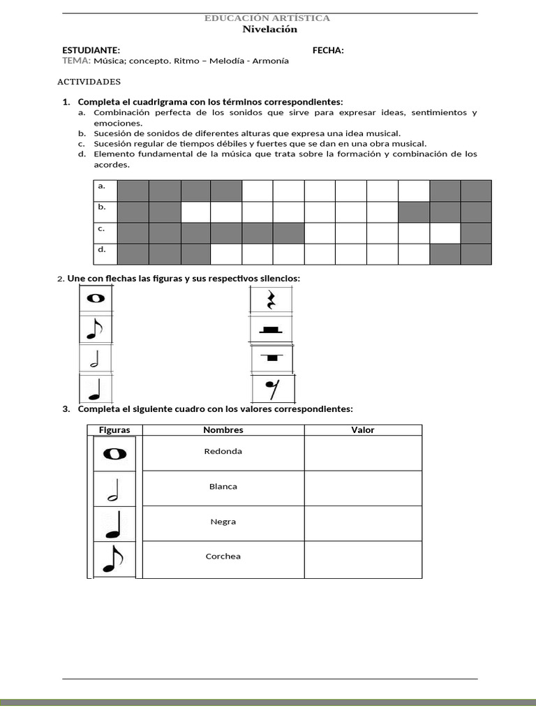 2. Une con flechas las figuras y sus respectivos silencios: