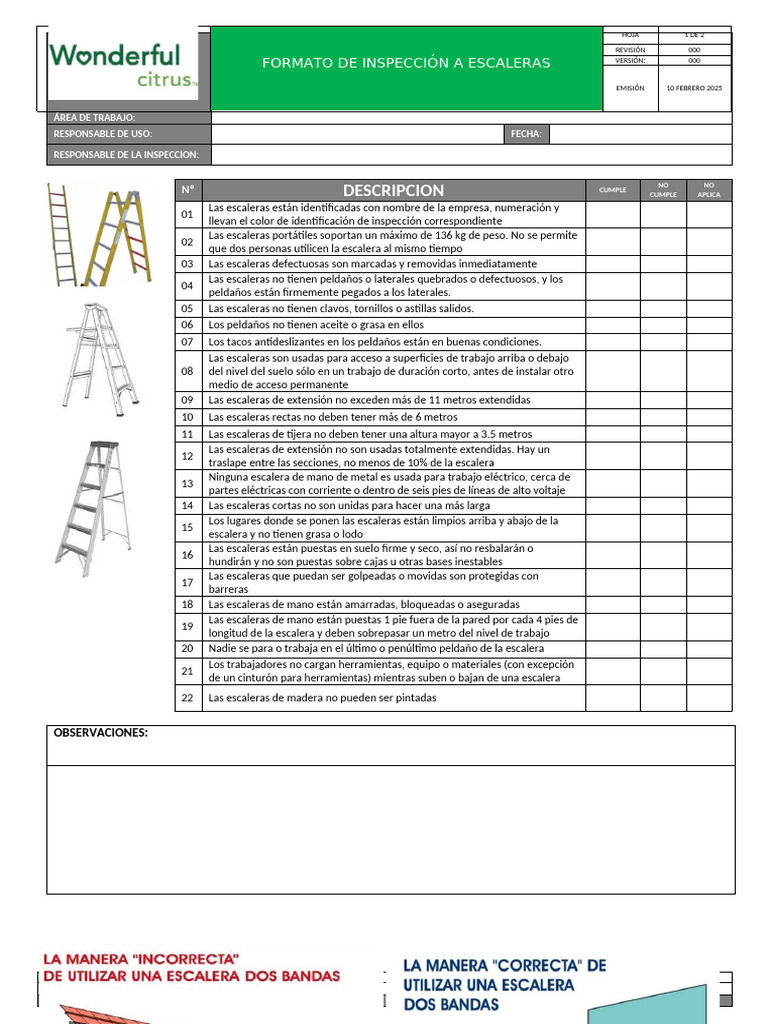 001 INSPECCION DE ESCALERAS PORTATILES