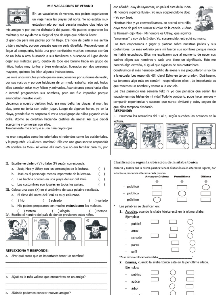 a. José, Moe y Uthay son los personajes de la lectura. ( ) Observa y analiza que la misma palabra tiene la sílaba tónica en diferentes lugares; por