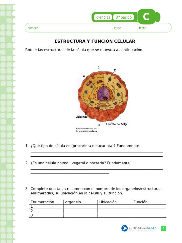 3. Complete una tabla resumen con el nombre de los organelos/estructuras