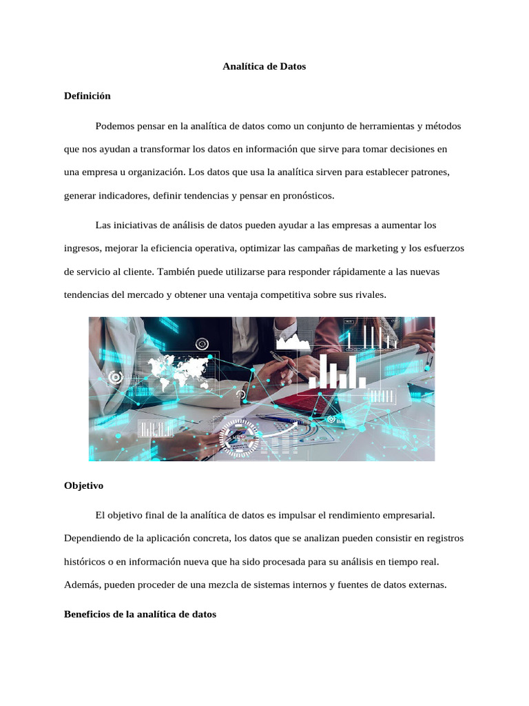 una empresa u organización. Los datos que usa la analítica sirven para establecer patrones,