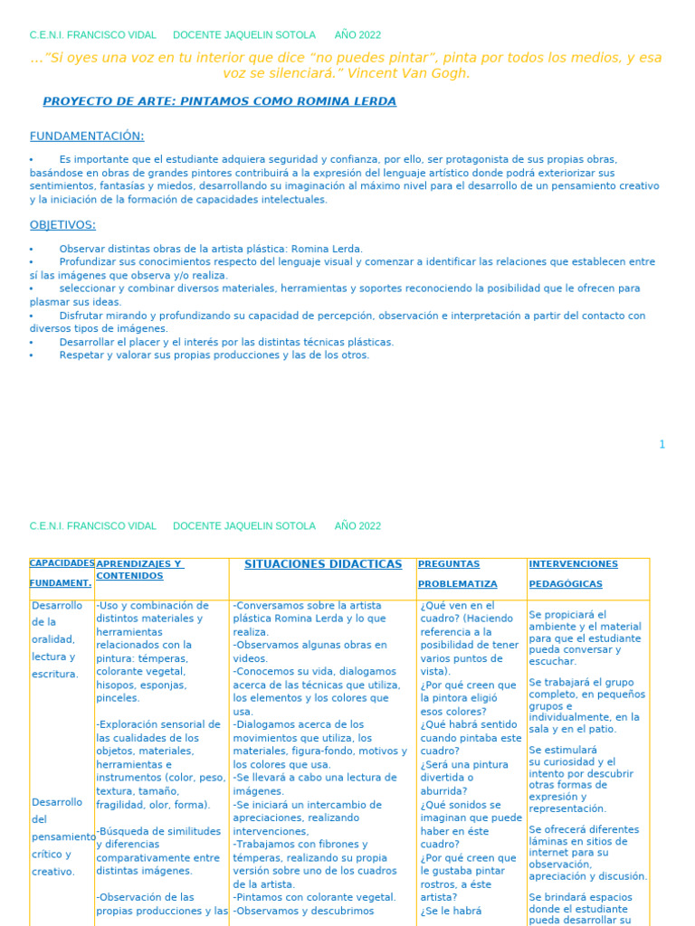 PROYECTO DE ARTE: PINTAMOS COMO ROMINA LERDA