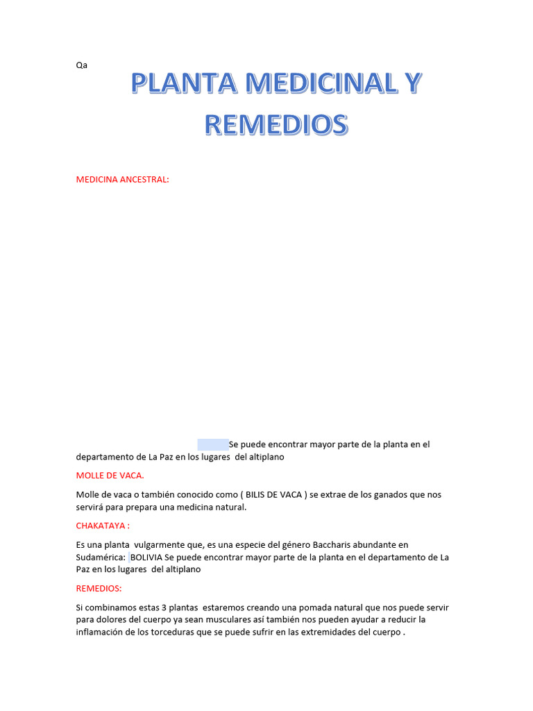 Es una planta medicinal que se puede encontrar en el departamento de La Paz por las