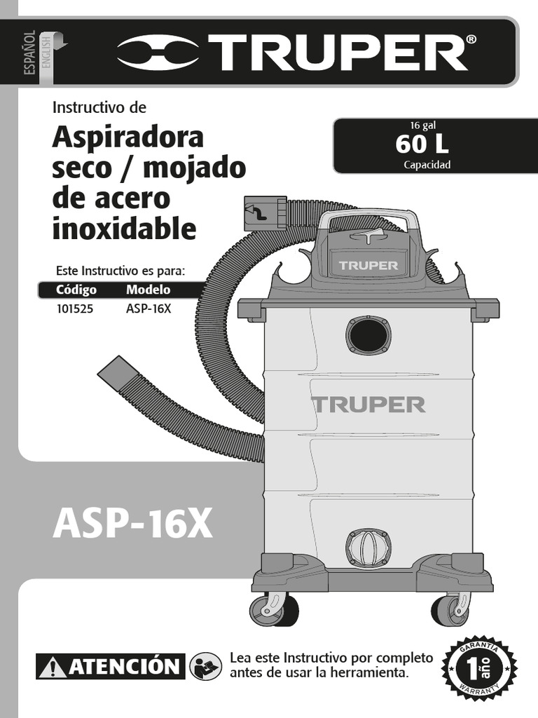 Descripción Aspiradora seco / mojado de acero inoxidable