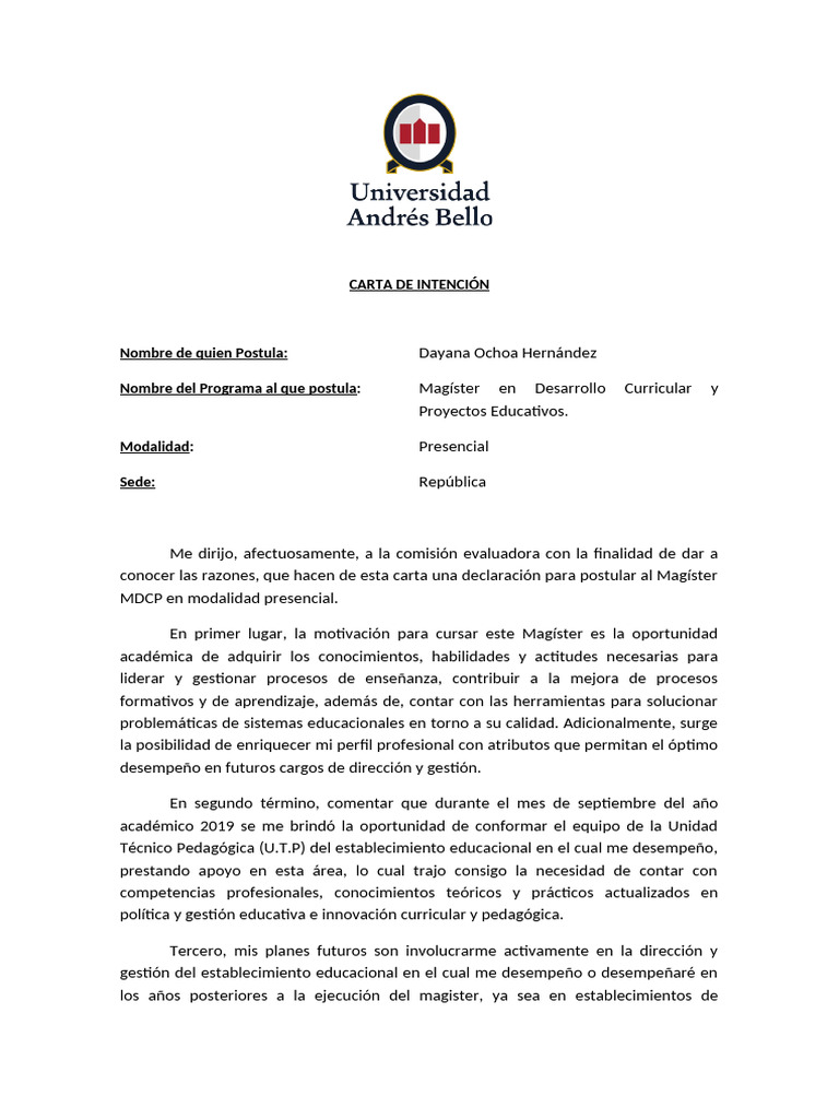 conocer las razones, que hacen de esta carta una declaración para postular al Magíster