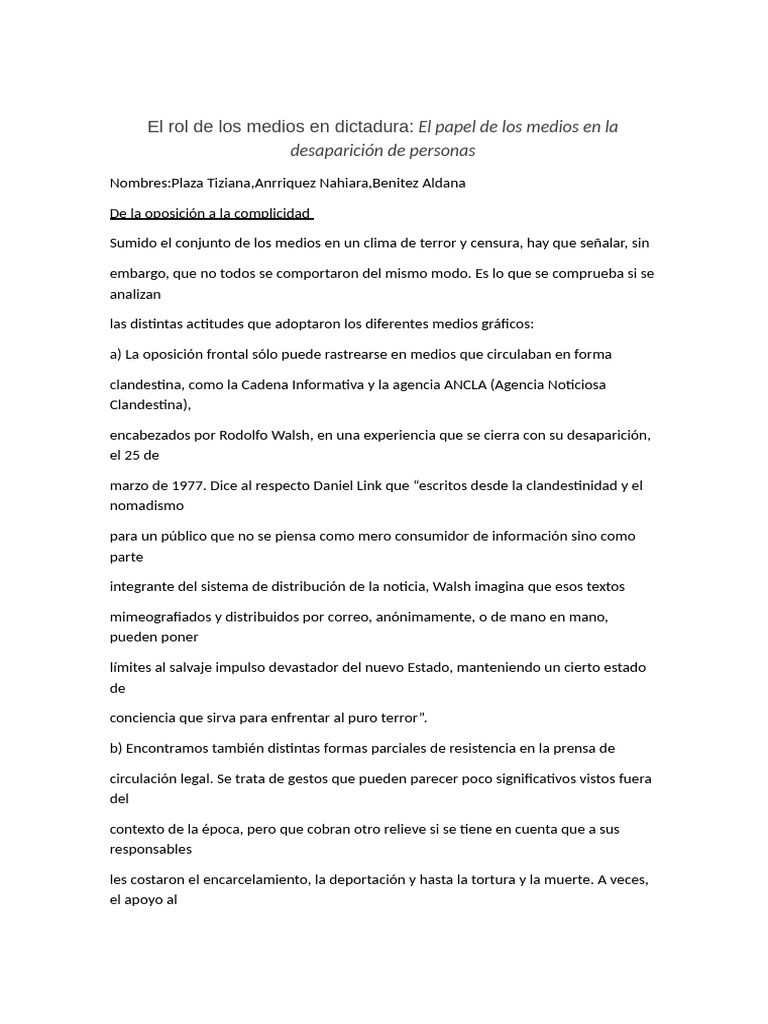 El rol de los medios en dictadura: El papel de los medios en la