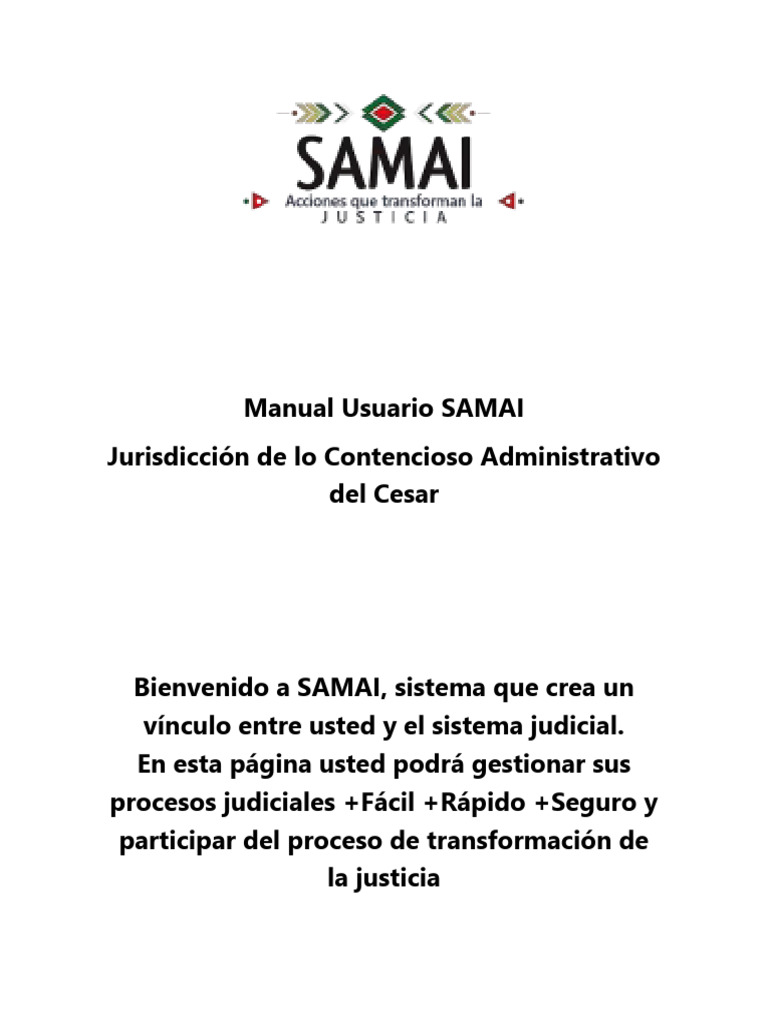 menú principal del sistema de gestión judicial SAMAI. Para mayor información,
