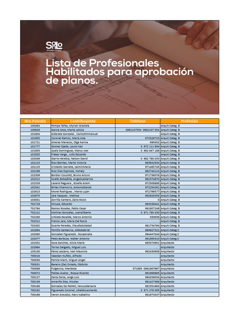Patente Contribuyente Telefono Profesión