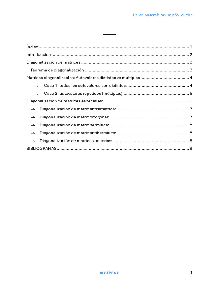 La presente carpeta de Álgebra II, se centra en el estudio de la diagonalización de matrices,